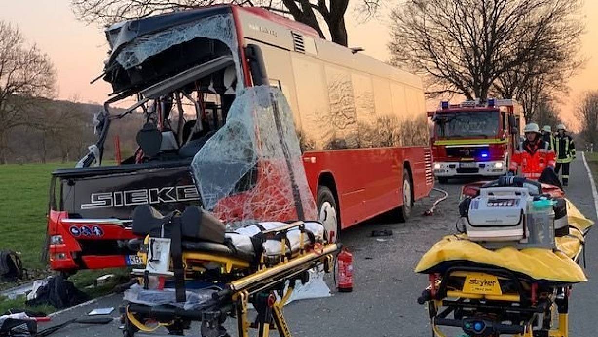 Lichtenau. Bei einem Busunglück nahe Paderborn sind insgesamt 35 Menschen verletzt worden, viele der Opfer sind Schüler. Zwei Schwerverletzte wurden mit Rettungshubschraubern abtransportiert. Der Linienbus kam auf der Kreisstraße 13 von Iggenhausen nach Grundsteinheim gegen 6.55 Uhr von der Fahrbahn ab und prallte gegen einen Baum. Dabei riss die rechte Seite des Busses teilweise auf, wie ein Polizeisprecher am Dienstag sagte.