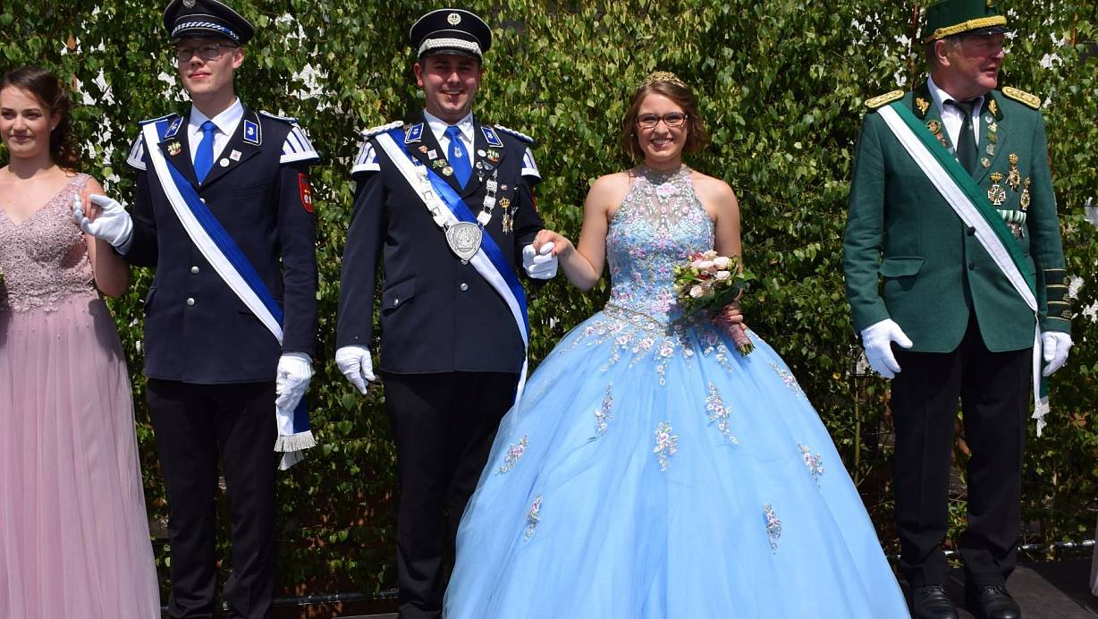 Lichtenau-Holtheim. Immer wieder ein Garant für eine große Anzahl von Schaulustigen ist die Ehrentribüne inmitten des Ortes Holtheim. Viele Einheimische und Gäste versammelten sich, um dem Königspaar Patrick Grewe und Lorina Wischer zu applaudieren.