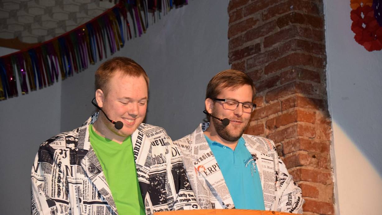 Gesprochen wird schon von jeher viel beim Galaabend der Spielschar und diese Tradition wurde zum Vergnügen des Publikums nicht verändert. Den sprachlichen Reigen eröffneten Patrick Berlage und David Glahn als Newspapermen warfen sie in Reimform einen Blick zurück auf Ereignisse in 2019.