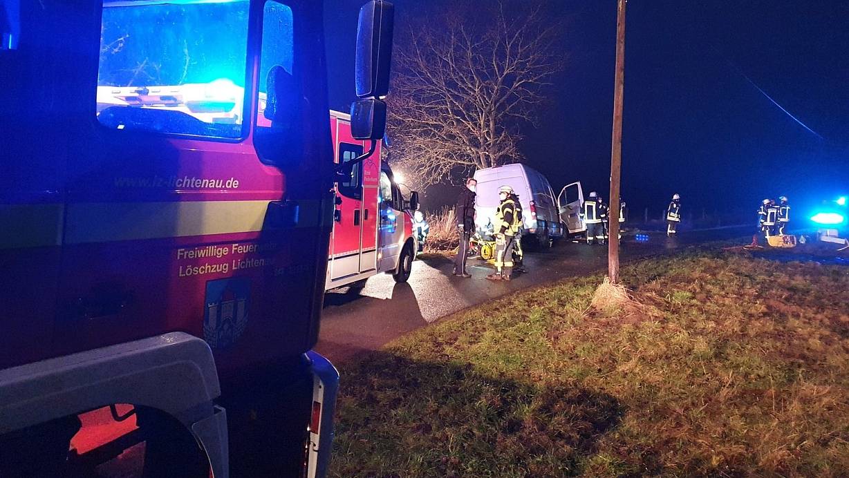 Lichtenau. Bei einem Verkehrsunfall im Lichtenauer Stadtteil Kleinenberg ist am Samstagmorgen ein 35 Jahre alter Kurierfahrer eines VW-Crafter-Kastenwagens schwer verletzt worden. Der Unfall ereignete sich gegen 6.25 Uhr auf dem Niederwiesenweg, der parallel zur Bundesstraße 68 verläuft.
