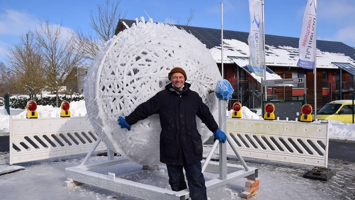 In Lichtenau helfen natürliche Bedingungen, ein Kunstwerk herzustellen. Arnd Drossels Metallkugel soll auf das rasante Abtauen der Polkappen aufmerksam machen.