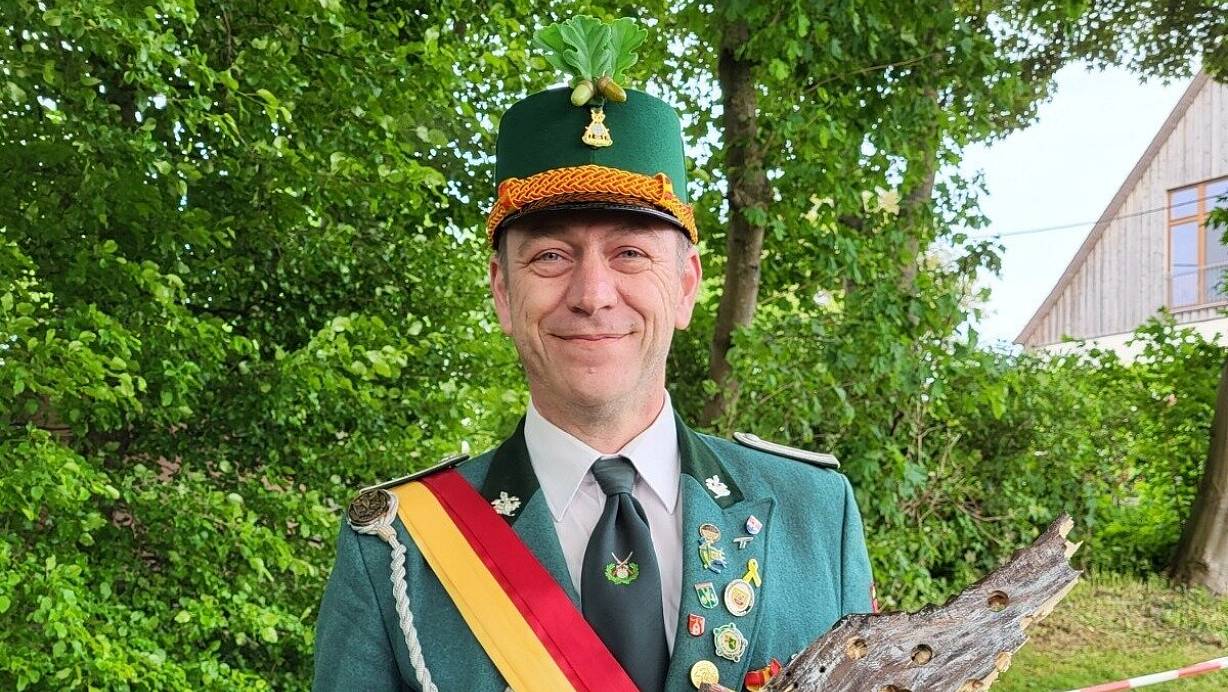 Lichtenau-Grundsteinheim. Thomas Buschmeyer (52) hat sich die Königswürde in Grundsteinheim gesichert. Mit dem 211. Schuss fiel der Vogel aus dem Kugelfang. Das Schützenvolk im Sauertal regiert er nun ein Jahr lang mit seiner Ehefrau Sabrina (42). Die beiden haben zwei Söhne. Stefan Kurte wurde mit dem 82. Schuss zum Kronprinzen.