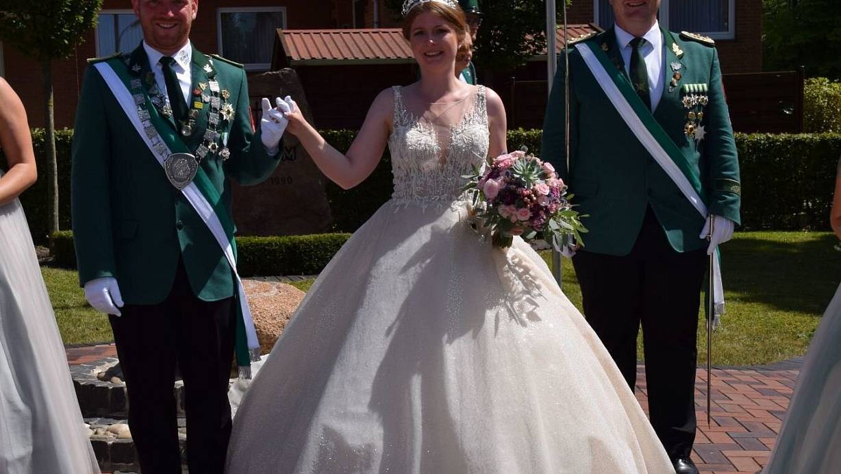 Lichtenau-Holtheim. Bei strahlendem Sonnenschein zog es viele Zuschauer zum Umzug in das knapp 1.000 Einwohner zählende Holtheim. Und beim Anblick des ebenso strahlenden Königspaares Marcel Knaup und Vanessa Dewenter dürften sich viele an den Zeichentrick-Filmklassiker „Cinderella“ erinnert haben, denn das Kleid der Königin war märchenhaft.