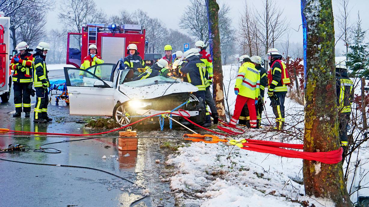Schwerer Verkehrsunfall auf glatter B68 bei Lichtenau