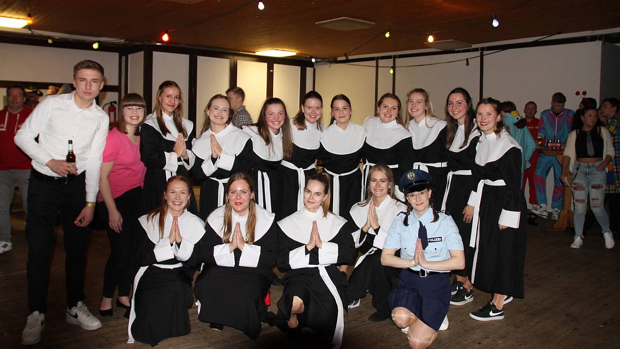 In die Bütt stieg auch Urgestein Christian Pittig, der souverän locker mit Wortverwechslungen spielte. Neben Pittig, der mit Livegesang den Jecken einheizte, präsentierten Felix Rehermann, Leandro Leifeld, Jan-Erik Hanitz, Pascal Klinke und Jan-Niklas Bentfeld eine Performance der besonderen Art. Per Plastikschlauch brachten sie eine Art Harmonium zum musikalischen Tuten und begeisterten die fantasievoll verkleidete Narrenschar.