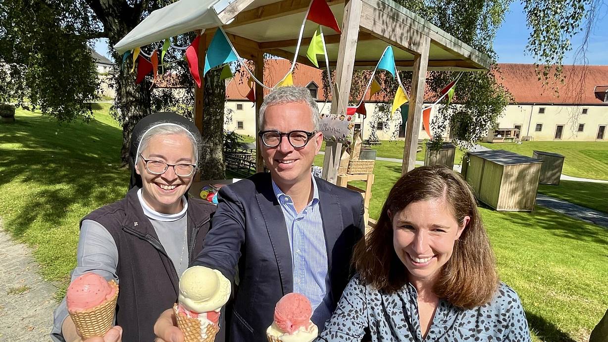 Zu haben sind an beiden Tagen an den Ständen deftige und ehrliche Leckereien wie die beliebte Erbsensuppe der Franziskaner aus Dortmund, Backwaren der Benediktiner aus Plankstetten oder Kunst aus dem Kloster Volkenroda. Beliebt sind die Waren aus den Klostergärten, etwa Tees und Liköre aus Rüdesheim sowie ein Kräuterdestillat nach Geheimrezept der Maristenbrüder aus Furth. Ihr Angebot um Eis erweitert haben die Schwestern der Hl. Maria Magdalena Postel aus Bestwig. Sie verkaufen es in Kooperation mit der Eismanufaktur Dag. Schwester Laetizia, von Beruf Lehrerin, freut sich auf die Gespräche mit den Besuchern. Die Einnahmen, erklärt sie, unterstützten weltweit missionarische Projekte des Konvents. Kaffee, Kuchen, Gebäck und mehr bieten wieder die Benediktiner aus Meschede an.