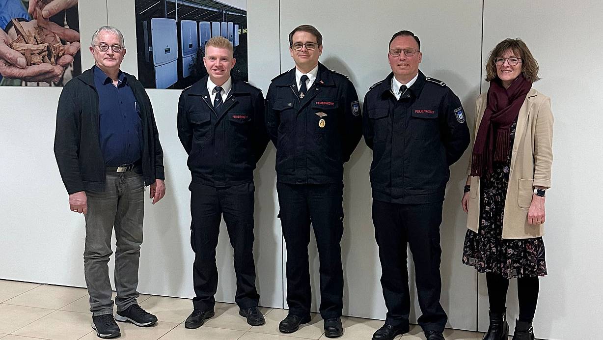 Dem neuen Wehrführer René Wittig stehen Sören Dege und Thomas Dinkelmann als Stellvertreter zur Seite. Bürgermeisterin Ute Dülfer führt das neue Trio ins Amt ein.
