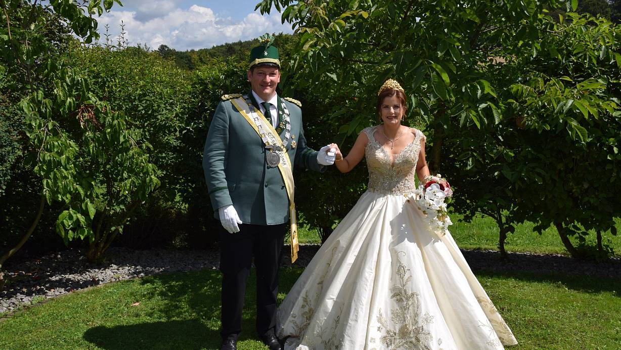 In dem Lichtenauer Ortsteil dreht sich der Festumzug um König Patrick Kalbhen und seine Königin Corinna Rehermann in einem Kleid aus Wildseide.