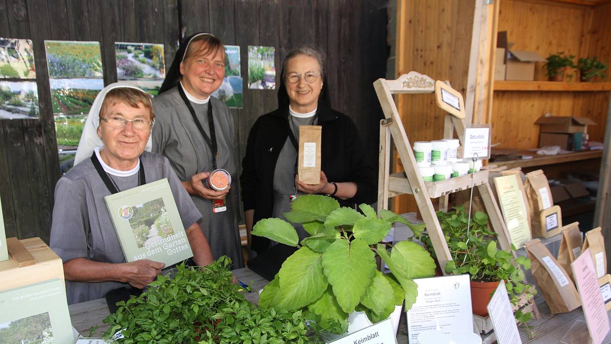 Zum ersten Mal sind die Franziskanerinnern Schwester Petre Kappius (Mitte), Schwester Birgit Bek (l.) und Schwester Brigitta Harsch in Dalheim dabei. Sie sind extra aus Reute angereist. | © Johannes Büttner