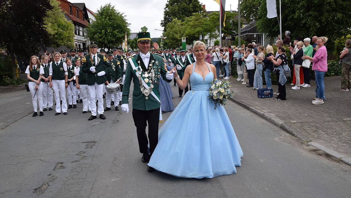 Das Königspaar Matthias und Ilona Werner steht beim Umzug im Mittelpunkt. Am Montag wird noch einmal gefeiert.