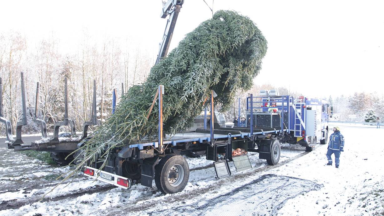Eine zehn Meter hohe Fichte aus dem Torfbruch bei Herbram-Wald wird im Foyer der NRW-Landesvertretung in der Hauptstadt aufgestellt. Seit 16 Jahren kümmert sich das THW um alles, zum 14. Mal kommt der Baum aus dem Lichtenauer Waldgebiet.
