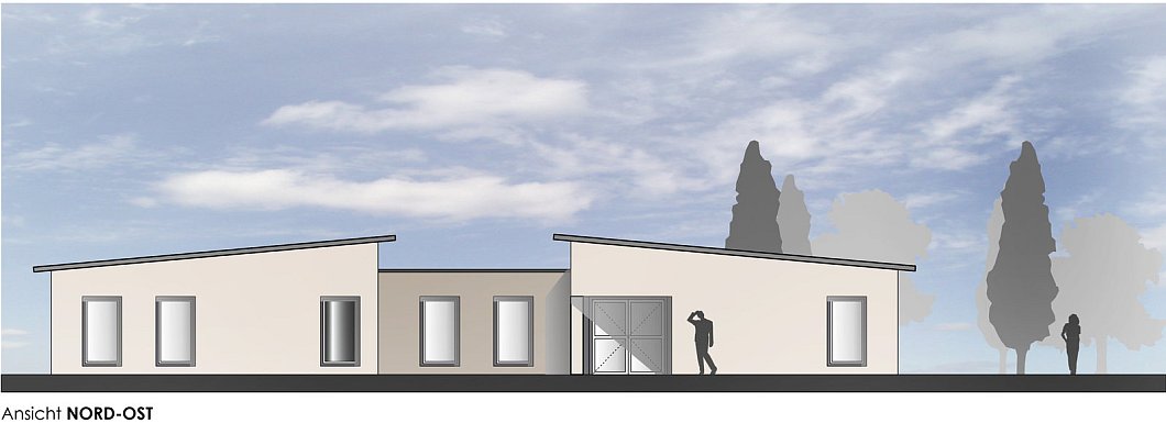 Das eher einfach aussehende, langgestreckte Flachdachgebäude ist voll und ganz auf die Bedürfnisse der Werkstatt-Beschäftigten ausgerichtet. Um ein Atrium sind fünf Gruppenräume angeordnet mit angegliederten Ruheräumen, um individuelle Rückzugsmöglichkeiten anzubieten. Auch Therapieräume und modernste Sanitäreinrichtungen sind vorhanden. Gleichzeitig ist der Neubau an den regulären Arbeitsbereich angegliedert, damit ein Wechsel aller Beschäftigten jeder Zeit möglich ist.