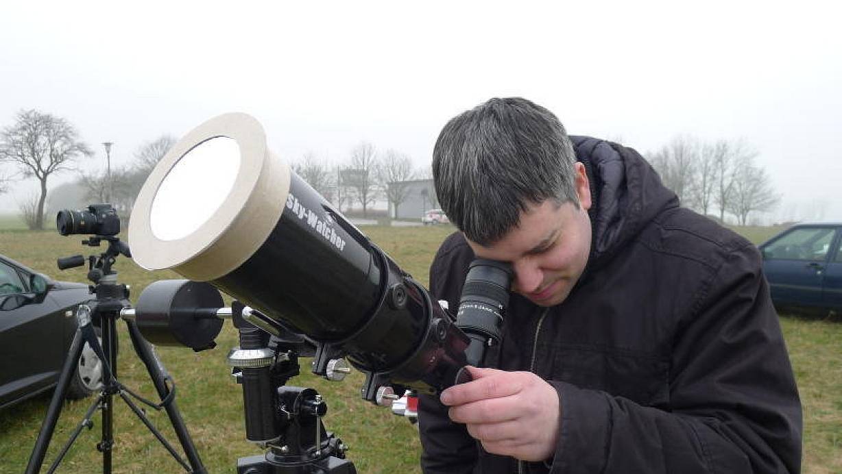 Um 10.40 Uhr sollte eigentlich der Höhepunkt der Sonnenfinsternis zu beobachten sein. Am Flugplatz auf dem Haxterberg in Paderborn, hatte die Sonne sich jedoch zu diesem Zeitpunkt noch gar nicht blicken lassen. Da die Volkssternwarte Paderborn aufgrund der laufenden Kernsanierung des Gymnasiums Schloß Neuhaus, inklusive der von der Sternwarte genutzten Seminarräume nicht öffnen konnte, trafen sich die Mitarbeiter mit ihren Teleskopen stattdessen auf dem Haxterberg, um das Ereignis zu beobachten und festzuhalten.