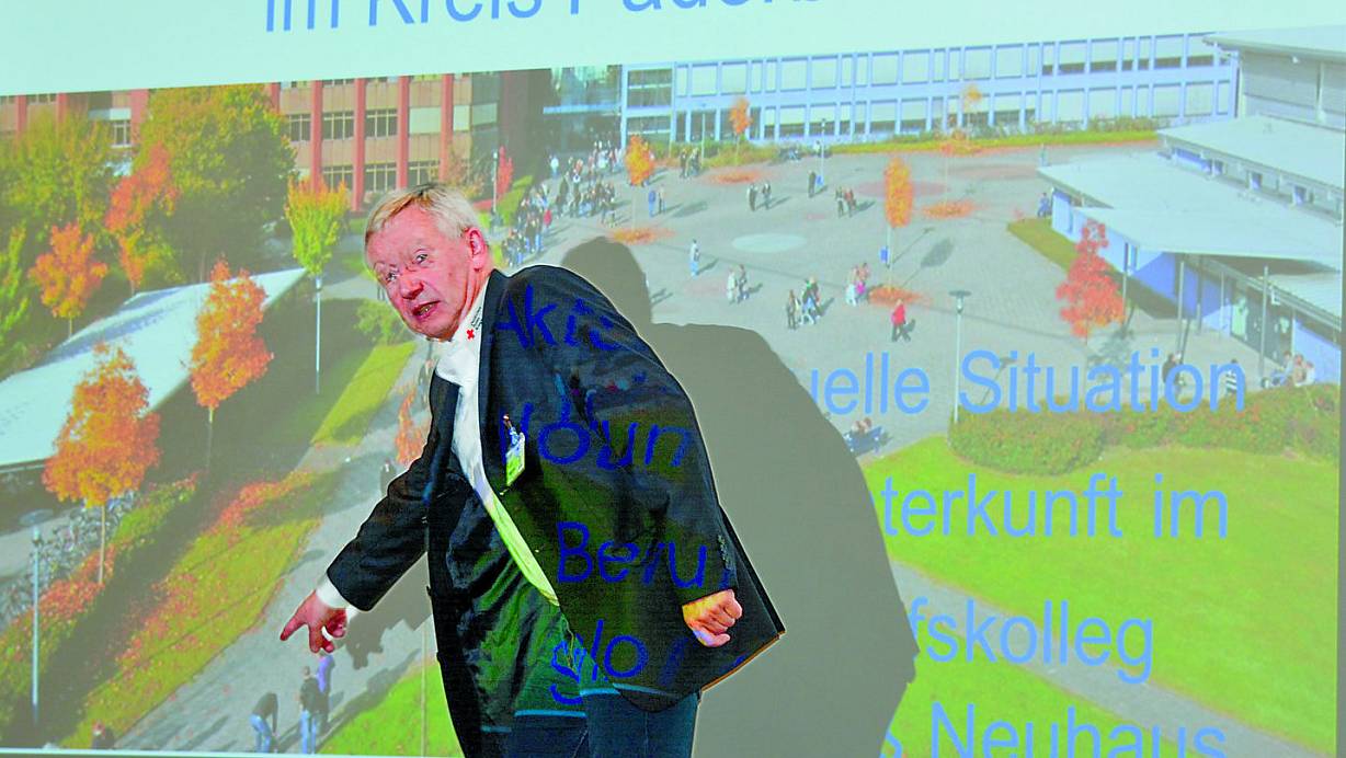 Neue Notunterkunft: Bürgerversammlung am Berufskolleg in Schloß Neuhaus in konstruktiver Atmosphäre. Rotes Kreuz übernimmt die Versorgung. Zaun trennt Sporthalle und Schule