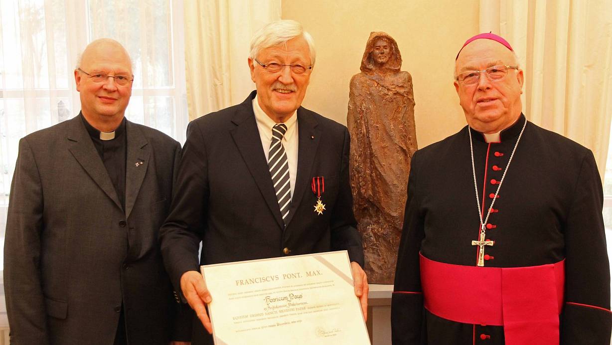Paderborn. Papst Franziskus hat Heinz Paus, den Präsidenten des Bonifatiuswerkes der deutschen Katholiken und ehemaligen Bürgermeister von Paderborn, mit dem Silvesterorden ausgezeichnet.Erzbischof Hans-Josef Becker überreichte am Freitag im Bischofshaus dem 67-Jährigen die hohe päpstliche Ehrung. Verbunden mit der Ordensverleihung ist die Ernennung zum „Ritter des Ordens vom Heiligen Papst Silvester“.