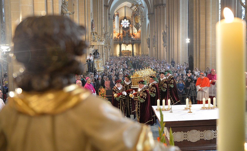 Angesagt haben sich mehr als ein Dutzend katholischer Bischöfe aus neun Ländern. Das Motto lautet "Herzlich - herzhaft - barmherzig". Im Paderborner Dom wurde unter den Klängen des Libori-Tuschs der goldene Reliquienschrein mit den Gebeinen des heiligen Liborius (348-397) aus der Krypta in den Hochchor gebracht.
