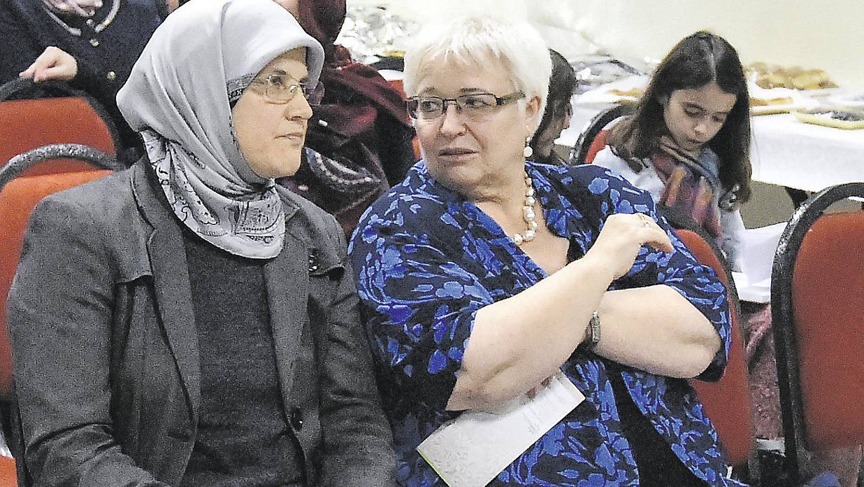 Im Gespräch: (v.l.) Ayten Kilicarslan von der türkisch-islamischen Union Ditib, tauschte sich beim Schura-Neujahrsempfang mit der schulpolitischen Sprecherin der grünen Landtagsfraktion, Sigrid Beer, über die Ditib-Problematik aus. | © Marc Köppelmann