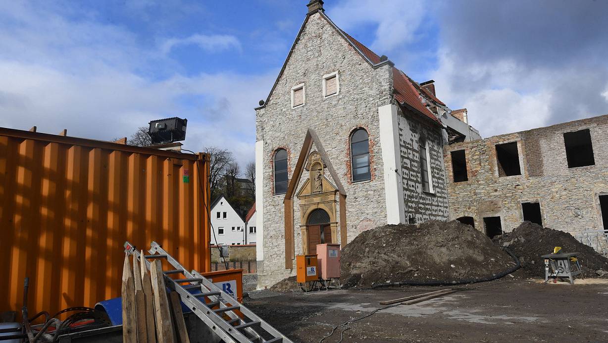Die ersten Baucontainer stehen: Das interessante Bauprojekt in prima Altstadt-Lage soll fast 400 Jahre Ordens- und Hospitalgeschichte mit moderner Architektur vereinen. Etwa 120 der insgesamt 900 Mitarbeiter der Unternehmensgruppe Jacoby werden künftig zwischen Kisau, Spitalmauer und Pader in der Firmenverwaltung arbeiten. | © Marc Köppelmann
