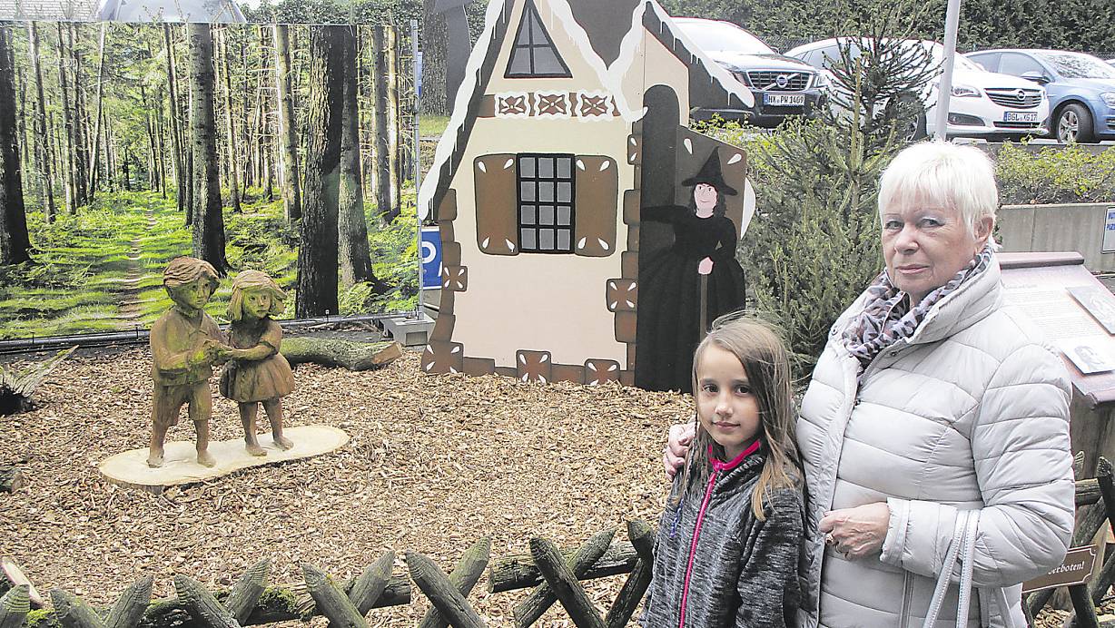 Märchen-Fan: Waltraud Kubik ist mit Enkelin Juna Versen (9) extra aus Steinheim gekommen, um sich die Märchenszenen anzuschauen und den Erzählern zu lauschen. Ihre Reise beginnt am Hexenhaus aus "Hänsel und Gretel", der Lieblingsgeschichte der Viertklässlerin. | © Birger Berbüsse