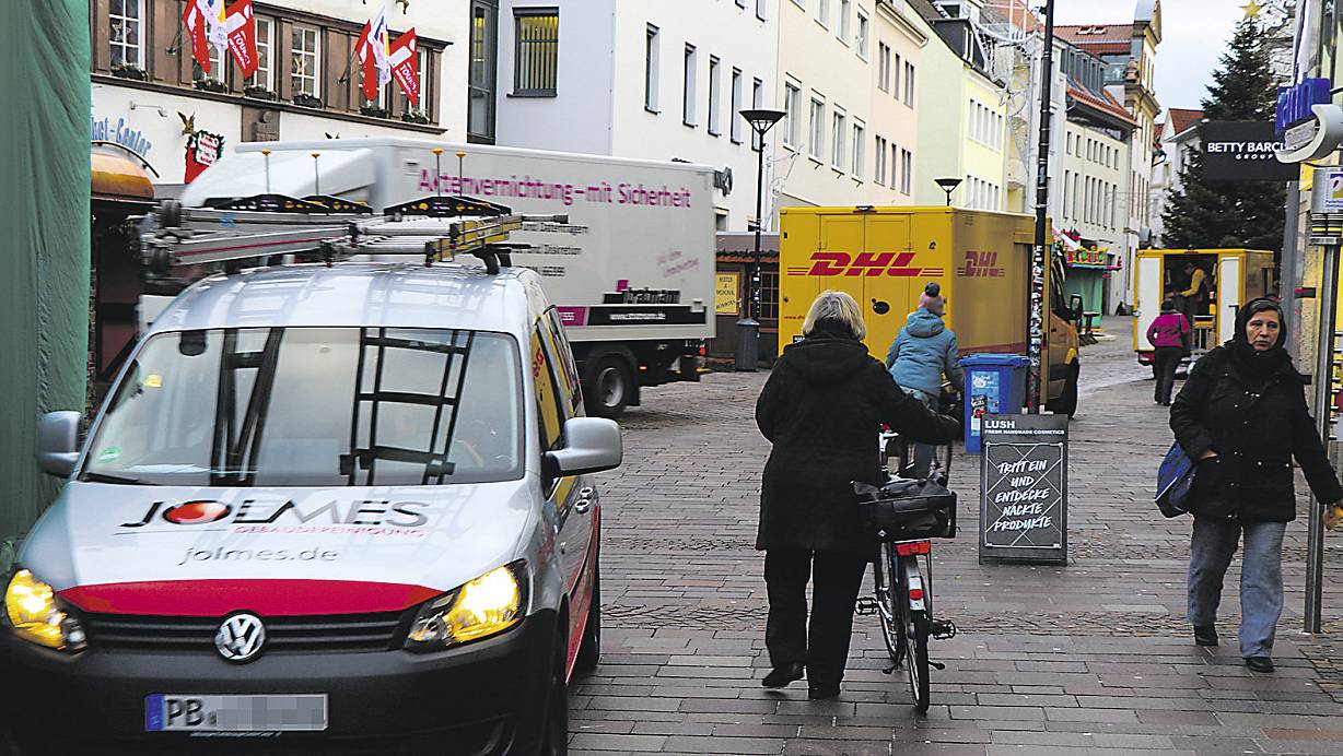 Bekannte Szenerie: In der Fußgängerzone stehen etliche Fahrzeuge. Dies soll es in Zukunft ab 10.30 Uhr so nicht mehr geben. | © Holger Kosbab