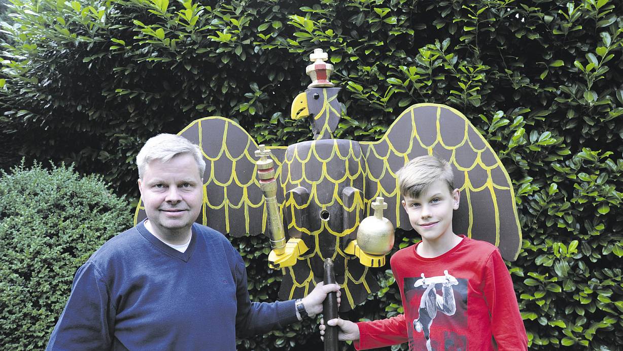 Das Prinzen- und Königsschießen wäre nichts ohne den Adler. Reinhard Hepers erhält dabei Unterstützung von seinem Sohn Leonhard