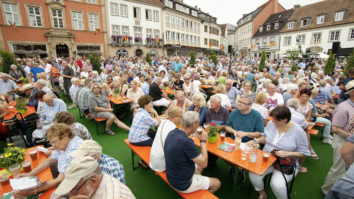 Tausende Paderborner und Gäste verfolgen die ersten Schläge. Am Geläut muss aber noch ein bisschen nachgebessert werden