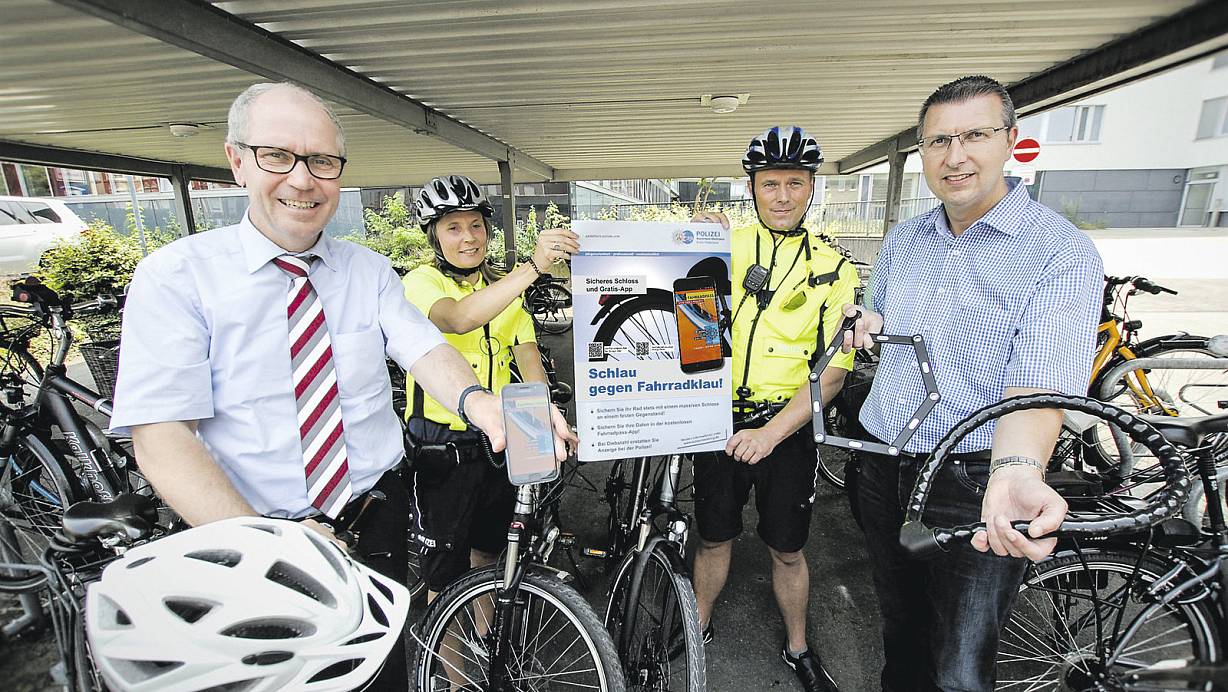 Der Tipp von Landrat Müller und Kommissar Gall: Noch einfacher können die Fahrraddaten - Rahmennummer, Angaben zu Radtyp, Hersteller und Modell sowie eine genaue Beschreibung des Rads - samt Foto und Kaufquittung in der kostenlosen Fahrrad-App erfasst werden. Mit der App lassen sich mehrere Räder problemlos verwalten. Alle Daten können zudem ausgedruckt oder per Mail im Textformat oder als PDF-Anhang verschickt werden, zum Beispiel, um sie im Notfall sofort an die Polizei beziehungsweise den Versicherer weiterleiten zu können.