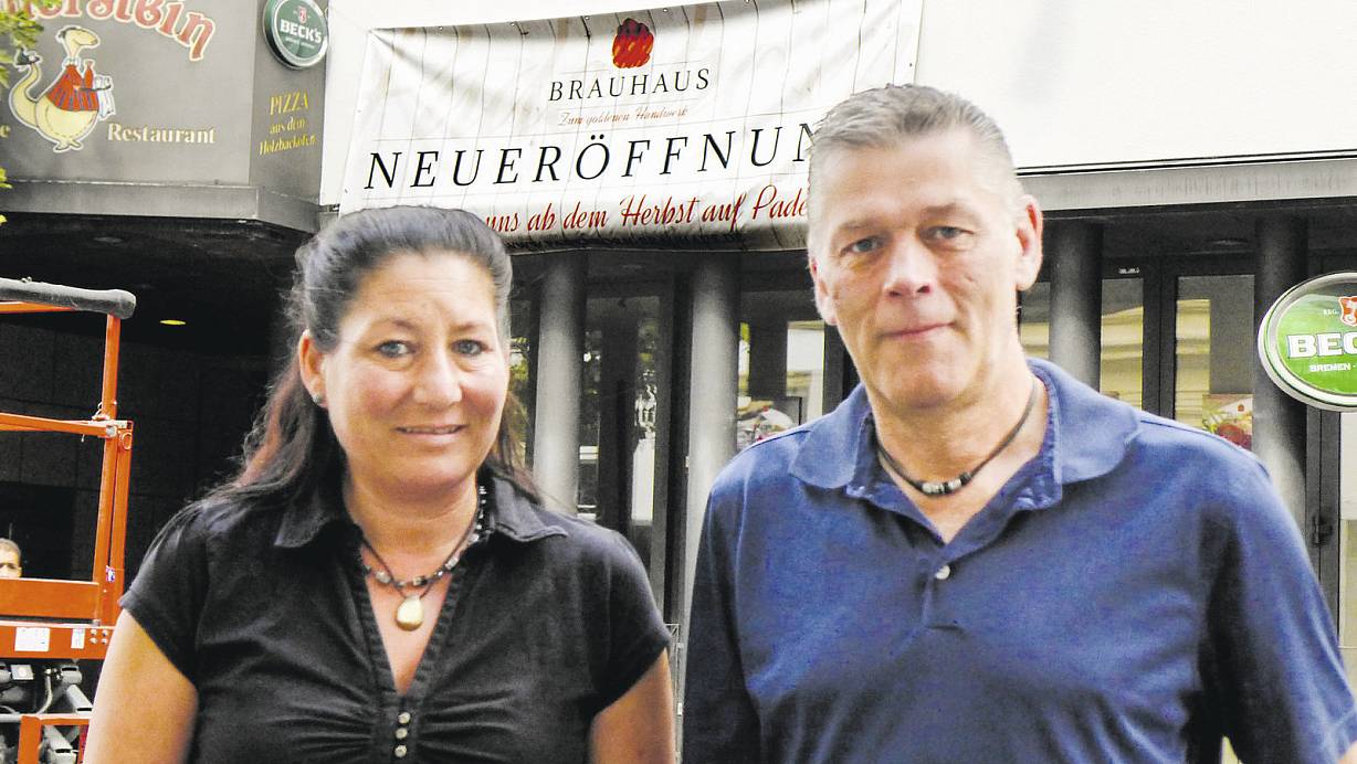 Engagieren sich am Kamp: Nicole Ramsahai und Heiner Hunstiger wollen ihr "Brauhaus zum goldenen Handwerk" im Oktober öffnen. Bis dahin läuft der Umbau des früheren "Feuerstein" auf vollen Touren. | © Hans-Hermann Igges