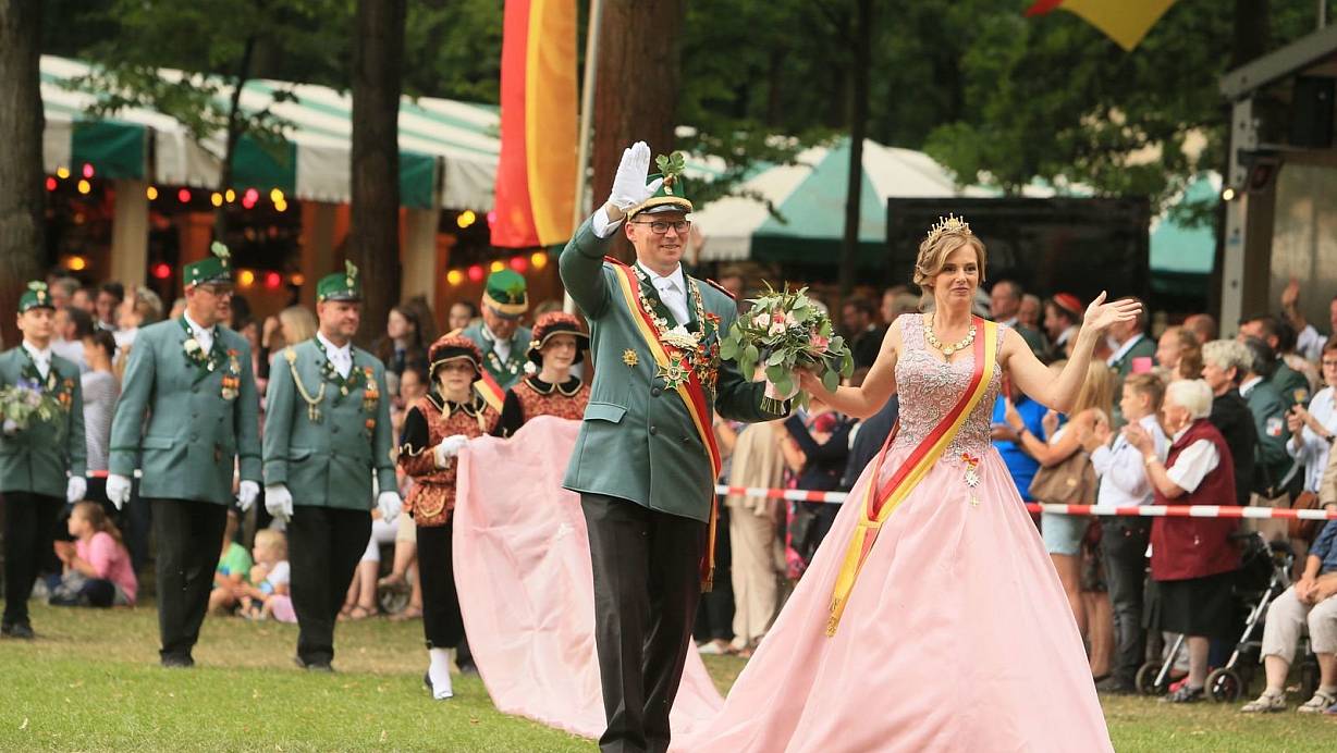 Bei der Parade: Paderborns Schützenkönig Ralf Brinkmann mit Königin Monika Koch. | © Uli Petzold