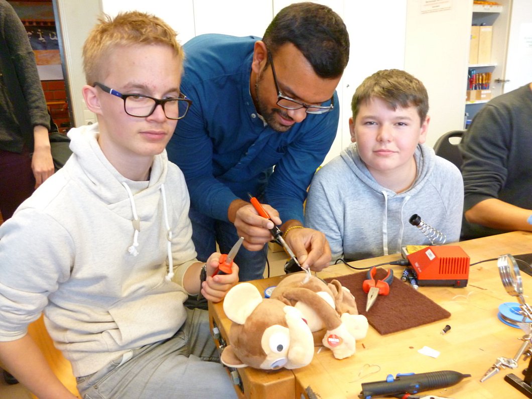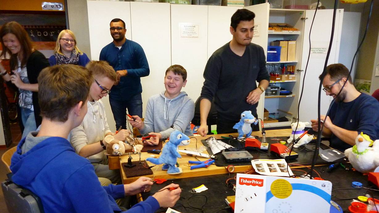 Damit Spielsachen auch für Kinder mit Behinderung zugänglich werden,funktionieren Schüler der Heinz-Nixdorf-Gesamtschule sie in der Liboriusschule um