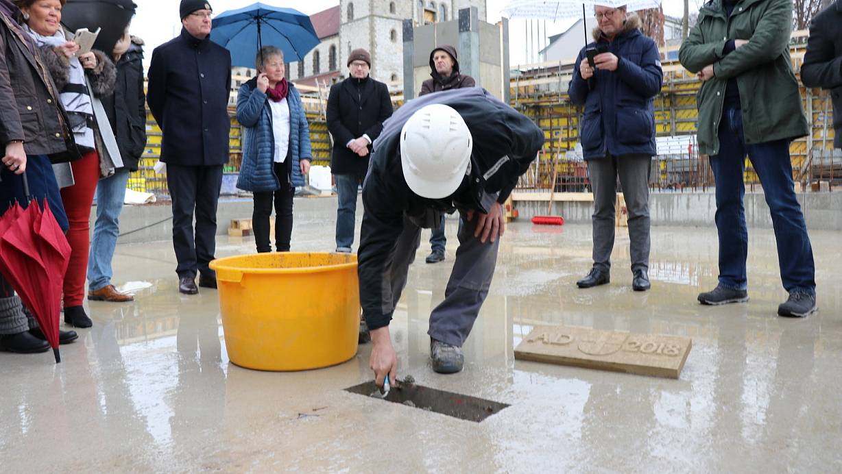 Symbolischer Start: Bei der Grundsteinlegung wurde eine Zeitkapsel einzementiert und gesegnet. | © Mareike Gröneweg