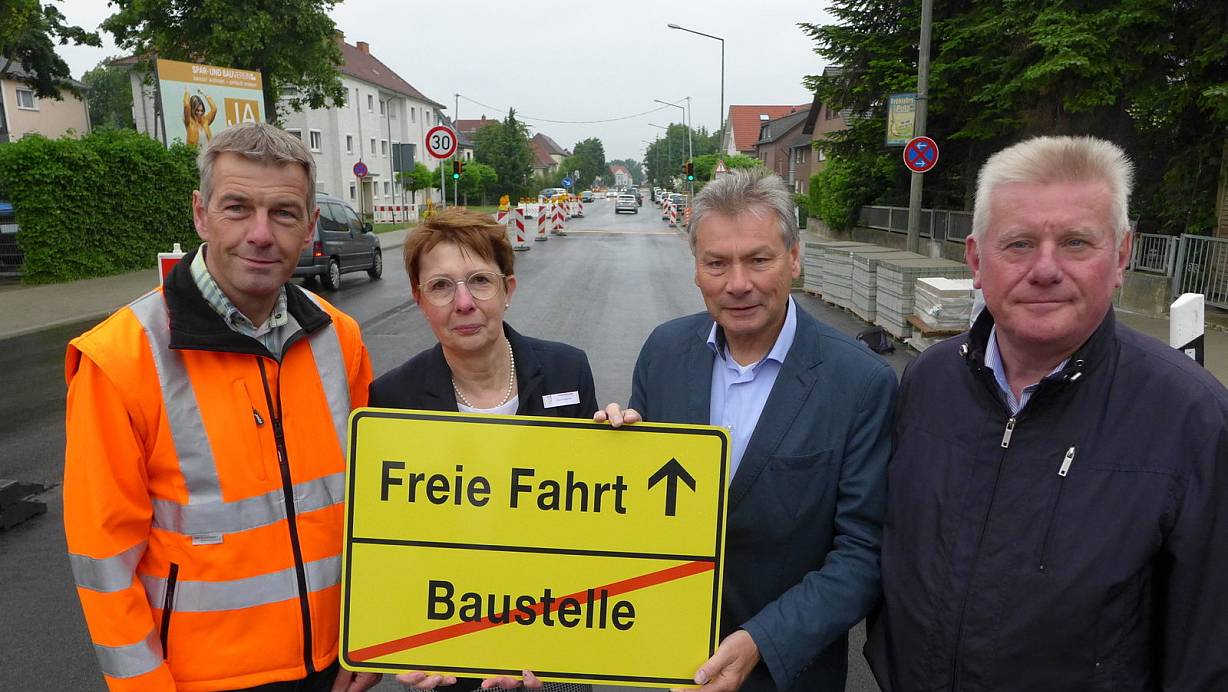Geben freie Fahrt: Michael Prang (v.l.), Margit Hoischen, Dietrich Honervogt und Ulrich Spenner auf der frisch sanierten Borchener Straße. | © Hans-Hermann Igges