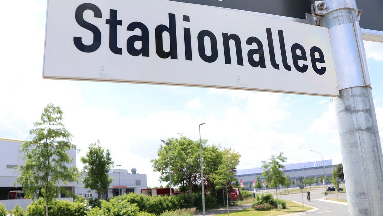 Die Stadionallee zwischen Benteler Arena und ehemaligem Finke-Möbelhaus könnte bald einen neuen Namen bekommen. | © Holger Kosbab