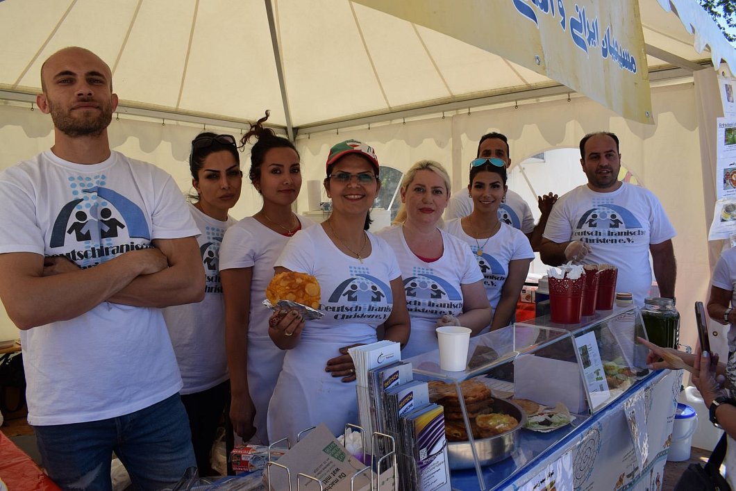 „Wir bieten Elefantenohren an, das ist eine persisch-iranische Spezialität", erklärt Maryan Saidi vom Verein Deutsch-Iranischer Christen. Der in Öl ausgebackene Teig wird in einem Sirup aus Safran, Rosenöl und Zucker getaucht, bevor er verspeist wird.