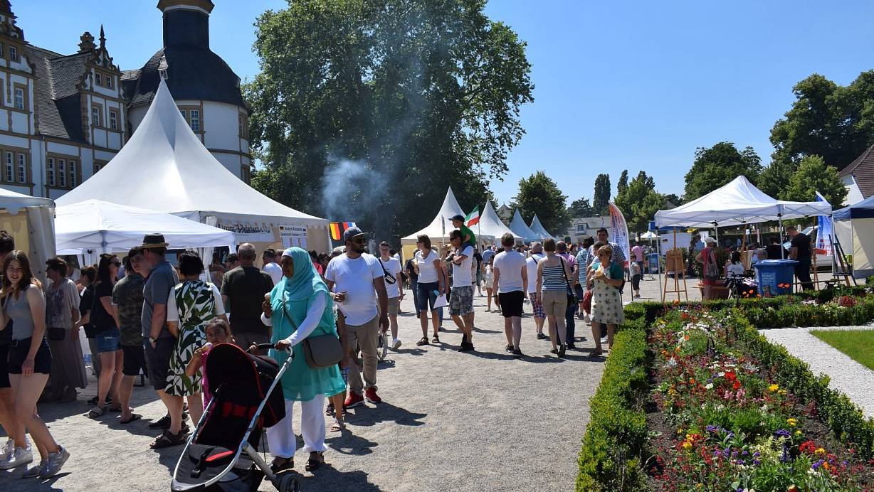 Im Schlosspark konnten die Besucher neben kulturellen Spezialitäten auch Offenheit und die Lust zum Gespräch bei den verschiedenen Vereinen finden. Das bunte Bühnenprogramm offenbarte zudem einen optischen und akustischen Eindruck von der Vielfalt des menschlichen Seins.