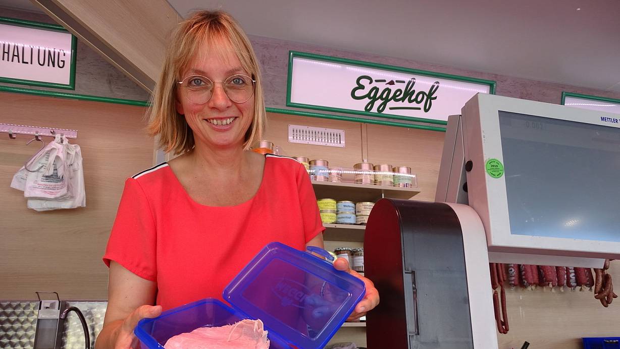 Umwelt- und Klimaschutz: ein emotionales Thema auf dem Wochenmarkt. Für Sabine Hoischen vom Eggehof in Borchen- Dörenhagen aber aus einem ganz anderen Grund. Sie wünscht sich klarere Anweisungen vom Veterinäramt, wie Stände von Frischeprodukten wie Fleisch, Wurst und Käse mit den von Kunden mitgebrachten Behältern umgehen sollen.