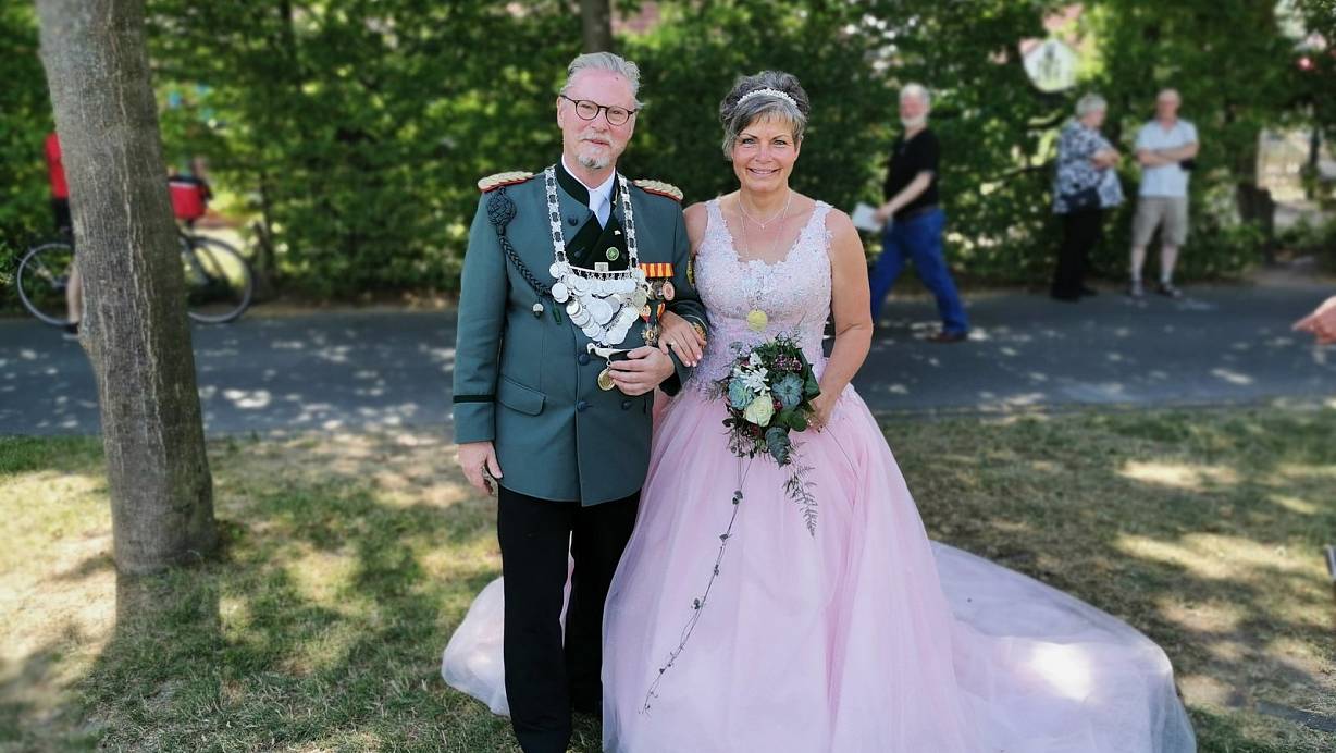 Königspaar Christoph und Ulla Quasten feiern Schützenfest bei strahlendem Sonnenschein.