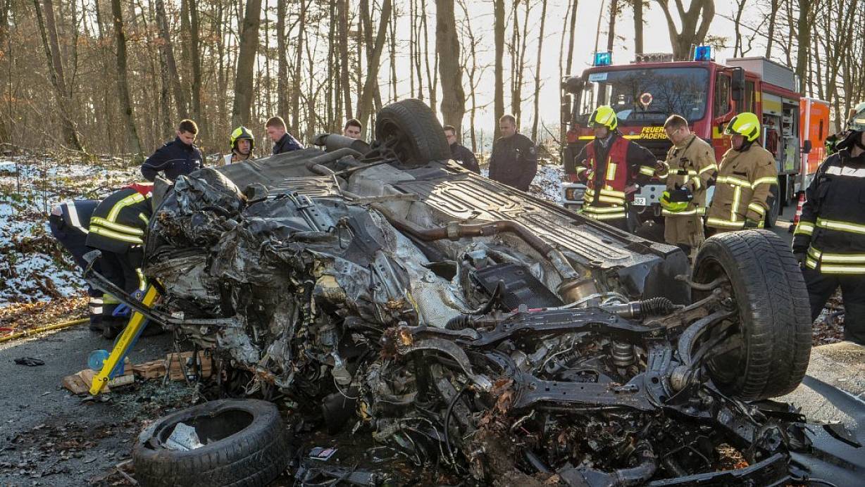 Der 60-jährige Fahrer dieses Jaguar kam Anfang Februar nachmittags bei Sande von der Straße ab und prallte frontal gegen einen Baum. | © Ralph Meyer