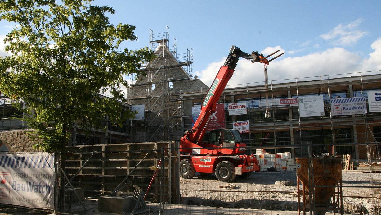 Denkmalgeschützt ist laut Jacob nur die Fassade der Kirche. Der Kircheneingang bleibt in der Mitte des Gebäudes. „Die historischen Teile werden als Ruine zurückgebaut. Wir zeigen auch die einzelnen Baureihen über die Jahrhunderte", erklärte Franz Jacoby. Weil es auf dem Gelände auch einen Friedhof gegeben hatte, wurde aus den Reihen des Publikums die Frage nach Gräbern gestellt. „Wir haben keine Gräber mit Skeletten gefunden", so der Firmengründer.