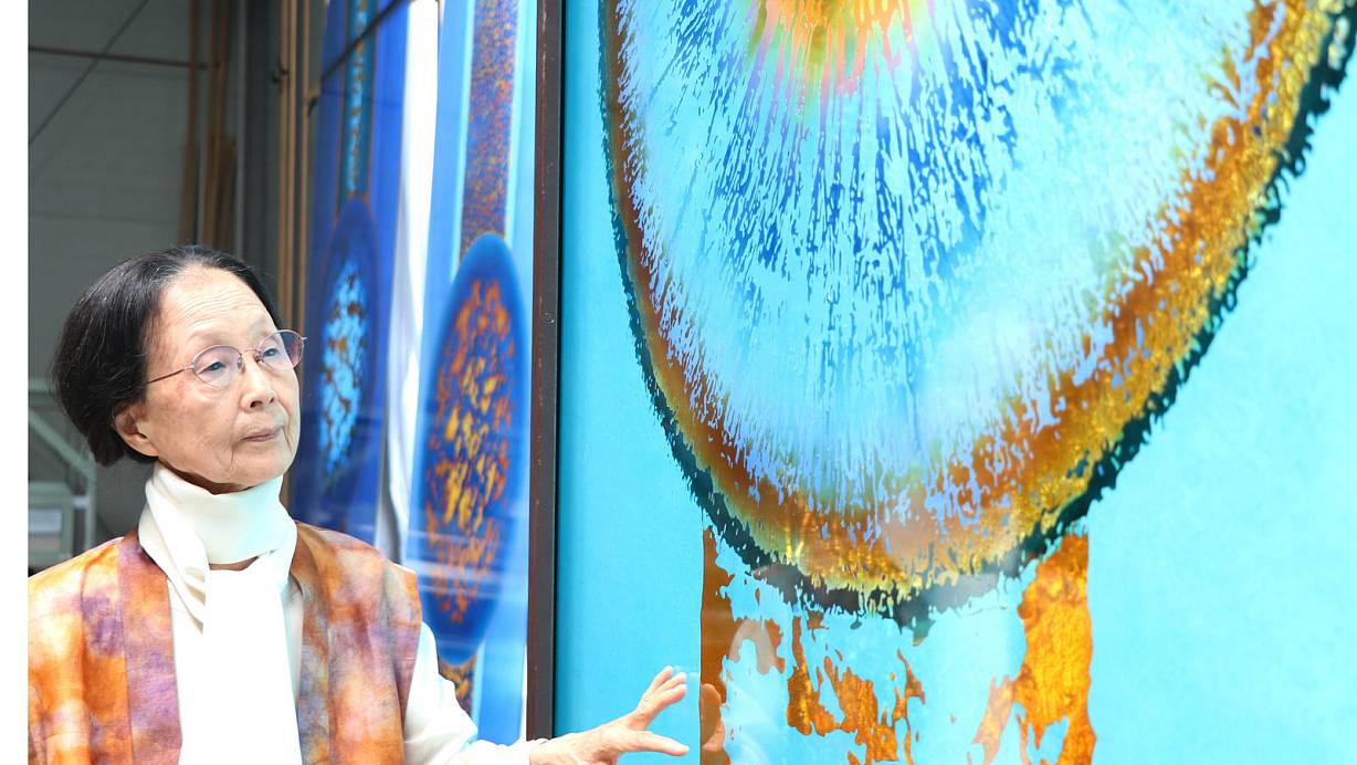 Vor dem Fenster zum Thema „Leben“: Die Künstlerin Hai Ja Bang mit der größten Arbeit ihrer „Message de lumière“. | © Holger Kosbab