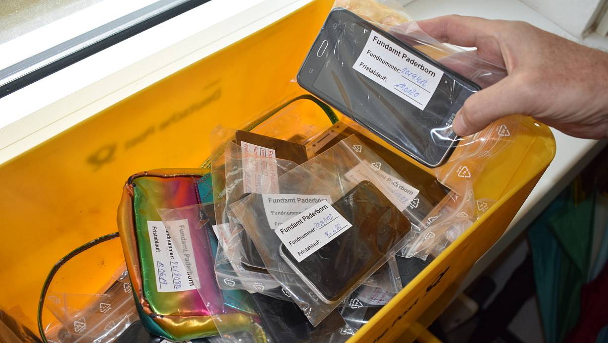 Mein Fundhandy wandert in die Kiste: Im Fundbüro der Stadt Paderborn warten viele Smartphones darauf, dass ihre Besitzer sie abholen. | © Svenja Ludwig