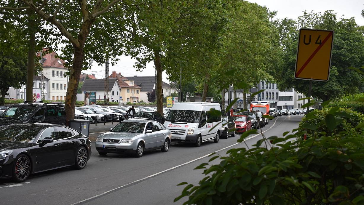Rückstau: Auch nachmittags um 15 Uhr stehen die Autos Stoßstange an Stoßstange auf dem Liboriberg. | © Svenja Ludwig