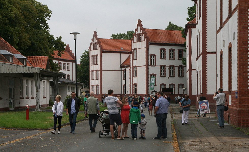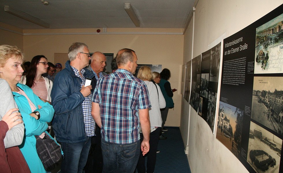 In einem der beiden gestern geöffneten denkmalgeschützten Gebäude schauten sich Neugierige dunkle Flure und leere Räume an. Die oberen Stockwerke waren für den Besucherstrom gesperrt. Viele interessierten sich auch für die Ausstellung „Von der preußischen Kaserne zum Wohn- und Kreativquartier".