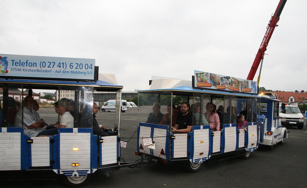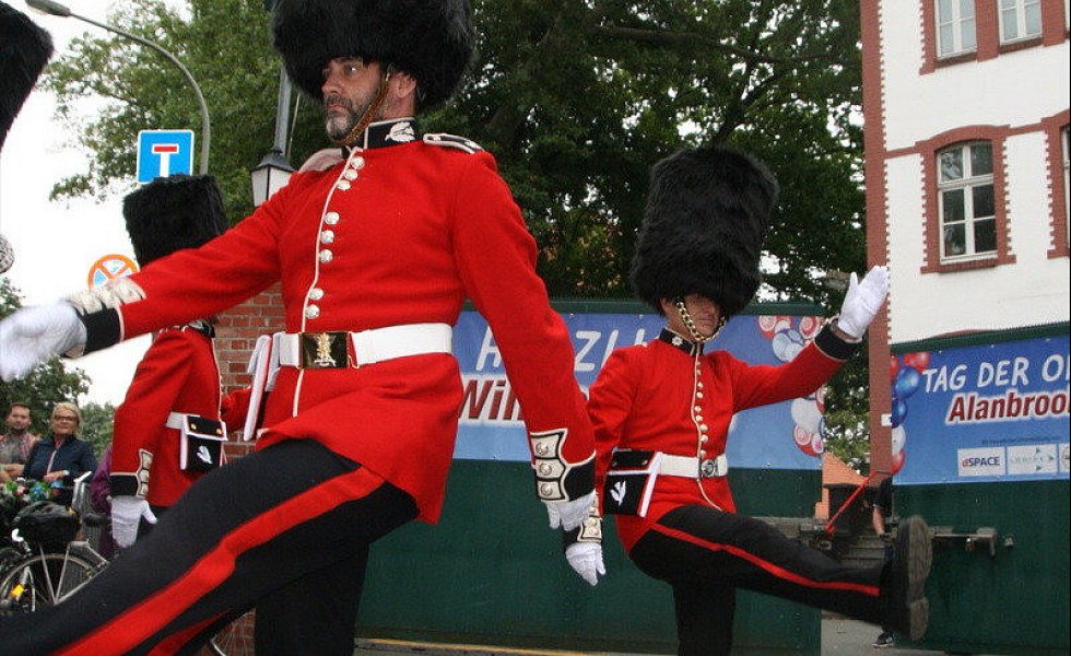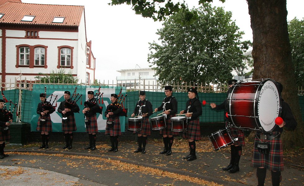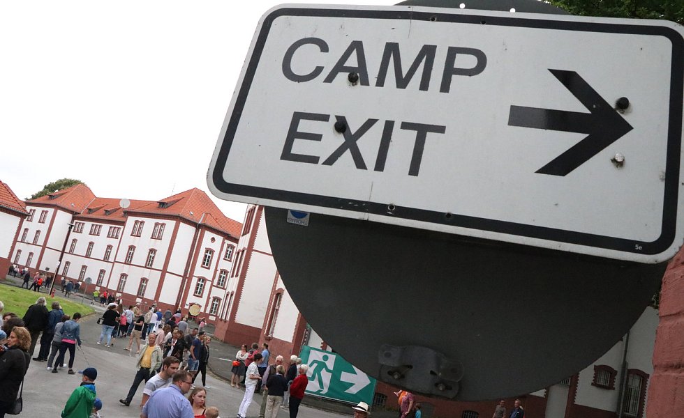 Leichte Beklemmungen wurden gleich wieder zerstreut. Denn angelockt unter anderem von den Klängen der heimischen Highland-Dragon-Pipe-Band ging es auf dem zentralen Kasernenplatz, bestückt mit einer Bühne und reichlich Gelegenheit zum Picknick, deutlich lockerer zu. Schnell bildeten sich Menschenschlangen, um von einem Ballon aus einen Überblick über das Gelände zu erhaschen oder um mit einer Bimmelbahn nicht zugängliche Bereiche des Areals zu entdecken.