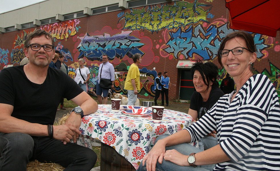 Vor der Turnhalle hatten es sich Ulrich Buschmeier, Dorothee Auffenberg und Heike Eckel gemütlich gemacht. Buschmeier hat von den Plänen der Stadt einen positiven Eindruck. „Ich finde es gut, dass hier auch etwas für den sozialen Wohnungsbau entsteht, man jedoch die historischen Teile belässt. Begrüßenswert ist auch die Einrichtung einer Kreativwerkstatt", sagt der 56-Jährige aus Salzkotten. „Man bekommt heute eine Idee davon, wie das alles aussehen könnte", ergänzt Dorothee Auffenberg.