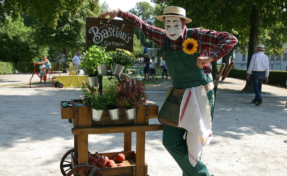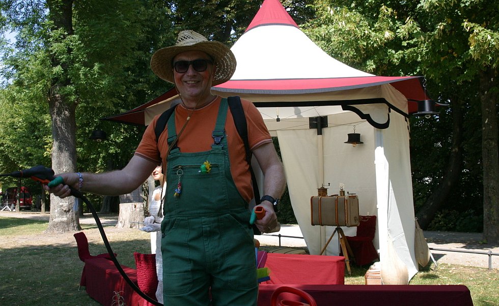 Dienstag, um 13 Uhr startet die Parade der Walk-Acts, also aller Künstler, die in Bewegung sind. Sie verteilen sich über den Schlosspark und kehren danach wieder zu ihren Standorten zurück. Auch "Onil", der Drache wird dann wieder dabei sein. Hermann selbst kennt nicht nur ihn aus dem letzten Jahr, sondern weiß genau, was jeder der Auftretenden präsentiert. Und er schätzt sowohl die leiseren, als auch die Artisten mit ihren besonderen Effekten. "Es ist eine Leidenschaft", so Hermann.
