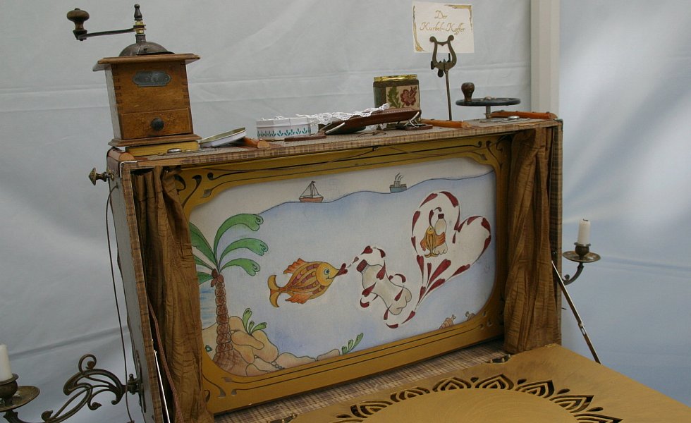 Ein Recyclingwunder ist auch Oni Maurers Drache "Onil". Dank seines "Magischen Magens" könnte der Müll fressen, Eier legen und noch einiges mehr. Doch dieses Jahr steht nicht er im Mittelpunkt ihres Programms. Weil es jedes Jahr etwas Neues geben soll, und die Kreativität der Künstler etwas anderes auch gar nicht zulassen würde, ist auch Maurer mit einer neuen Idee dabei: In ihrem Pavillion wird es poetisch, in ihrem Kurbel-Koffer zeigt sie Kindern Geschichten und auch deren Eltern lauschen gespannt, als sie zu erzählen beginnt und zugleich geheimnisvolle Muscheln an ihre Zuhörer verteilt, aus denen nicht nur Meeresrauschen klingt.