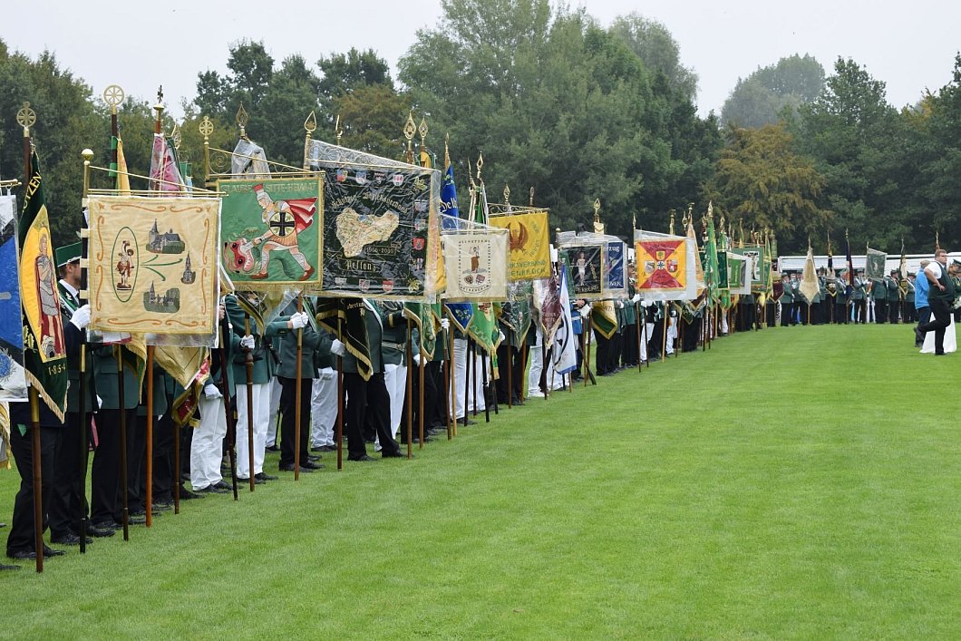 Der 2,8 Kilometer lange Marschweg durch Schloß Neuhaus war gesäumt von vielen Schaulustigen, so dass der fast dreistündige Festumzug gebührend bewundert werden konnte. Insgesamt sind 1.300 Schützenabordnungen im Bund der Historisch Deutschen Schützenbruderschaft versammelt. An die 15.000 von ihnen hatten sich für das Fest in Schloß Neuhaus angemeldet. 84 Könige und auch Königinnen nahmen am Königsschießen teil, wovon 51 die Ringzahl von zwischen 21 und 30 erzielten. Wer neuer Bundeskönig ist, unterlag bis zur Proklamation am Samstag der höchsten Geheimhaltungsstufe, denn erst kurz vor 18 Uhr stand fest, wer sich Bundeskönig 2019 nennen darf. Neben dem Bundeskönig wurden auch insgesamt sechs Diözesankönige ermittelt.