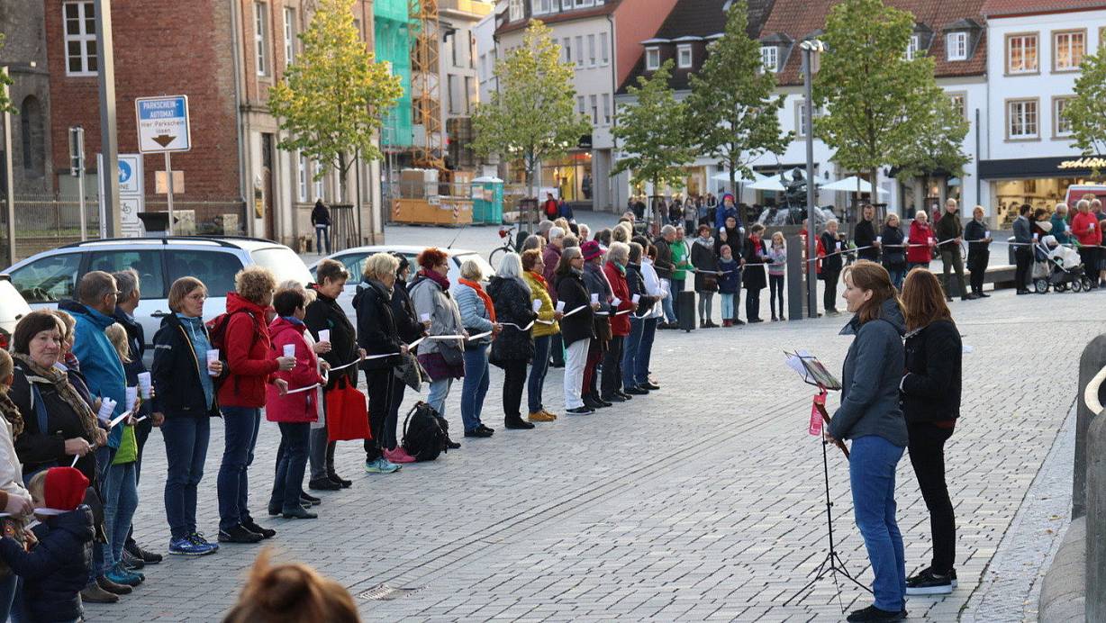 Maria 2.0 initiiert Menschenkette am Paderborner Dom für Mitbestimmung