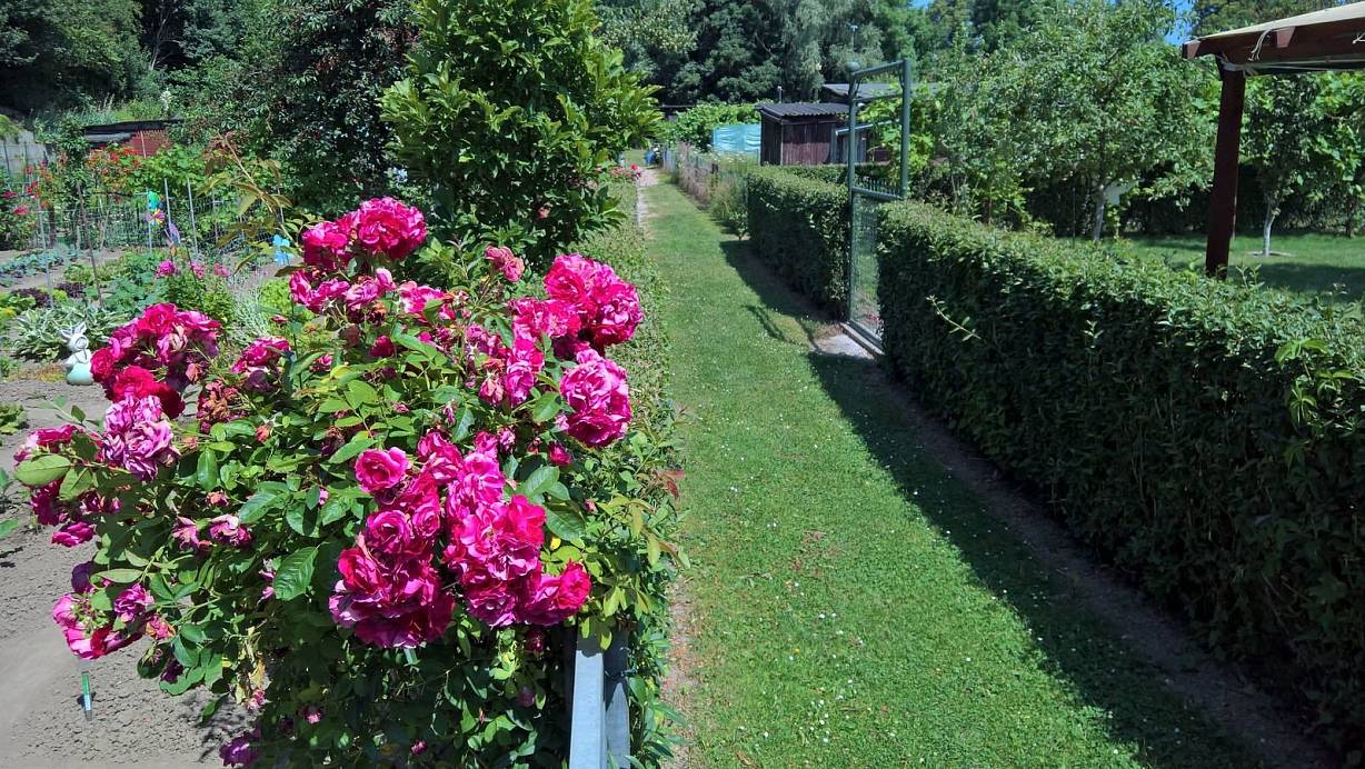Idylle: Blick in die Kleingärten des Vereins Deutsch-Ausländisches Freundschaftskomitee. Sie sollen der neuen Trasse im Verlauf der Bahnhofstraße weichen. | © Hans-Hermann Igges